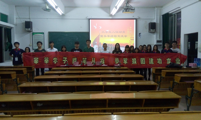 此外,我系团委于4月26日晚在B101举行了老员工参军入伍暨经验交流会,诚邀了经济系赖俊杰、法律系巫玉峰以及高原三名退伍军人作为本次交流会的特邀嘉宾。三名嘉宾分别分享了服兵役的详细准备过程,并生动阐述了从军前、中、后的生活,他们纷纷表示,日常训练中感受到的团队协作精神、环境造就自身对亲情的重视以及日积月累磨练出的坚强意志是他们两年军营生活中最大的收获。而赖俊杰同学则以“当兵可能后悔两年,不当兵后悔一辈子”激励同学们投身军营,锻炼自我,报效祖国。